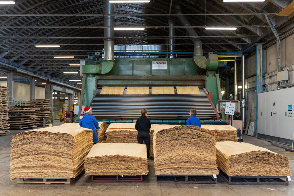 Il processo produttivo richiede un perfetto equilibrio nella gestione della materia prima. Tutto il materiale in eccesso non utile alla produzione del pannello diventa parte di un processo circolare e si trasforma in un sottoprodotto di lavorazione. Nel caso di corteccia, cippato e sfridi, si tratta di sottoprodotti idonei alla produzione di pannelli in fibra o energia. La parte centrale del tronco, noto come “tondello” viene utilizzata dalla filiera legno a vario titolo per la produzione di bancali, pallet o cassette.